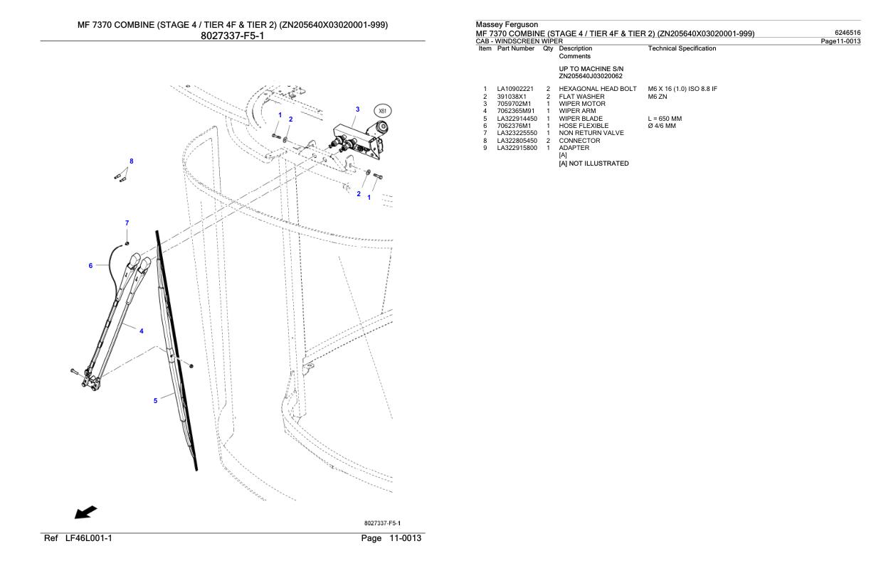 Massey Ferguson MF 7370 (Stage 4 Tier 4F & Tier 2) Parts Catalog 6246516
