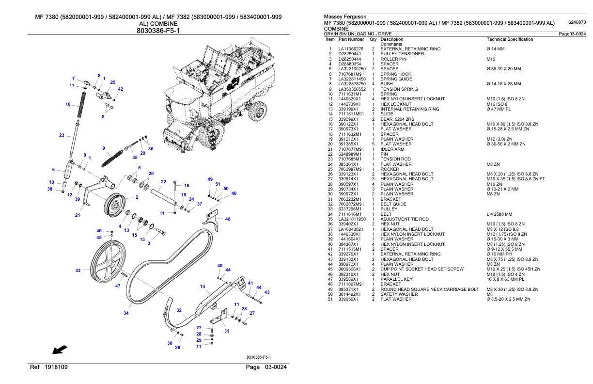 Massey Ferguson MF 7380 7382 Parts Catalog 6246070