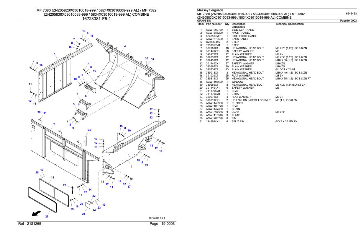 Massey Ferguson MF 7380 7382 Parts Catalog 6246463
