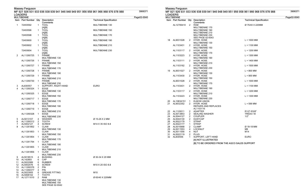 Machine Model: MF 921 to 988 Loader
