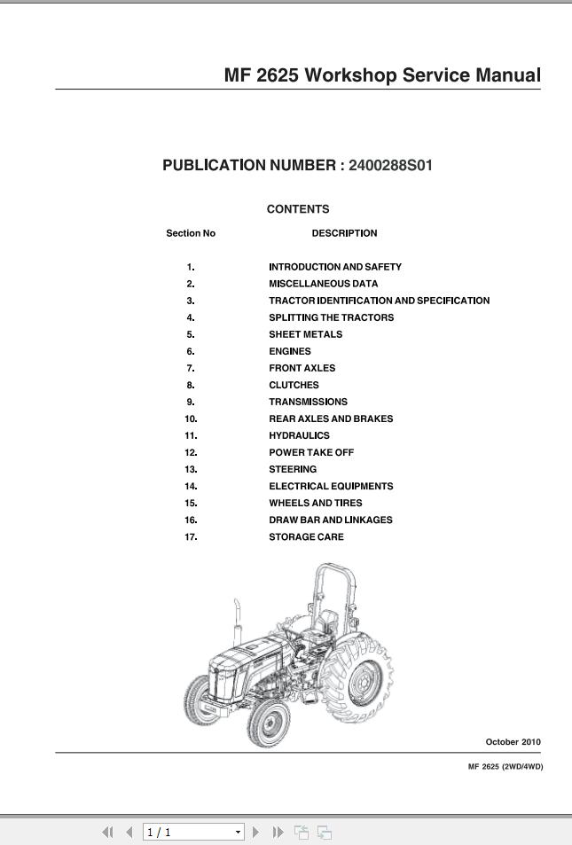 Tractor indentification and specification- MF 2625 (13 Pages)