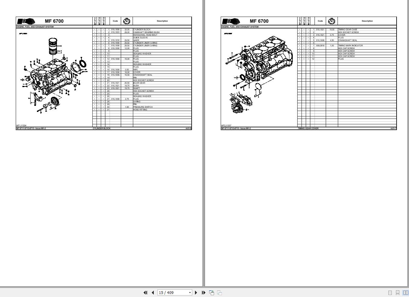 Massey Ferguson MF6711 MF6712 MF6713 Parts Manual ACW2508060