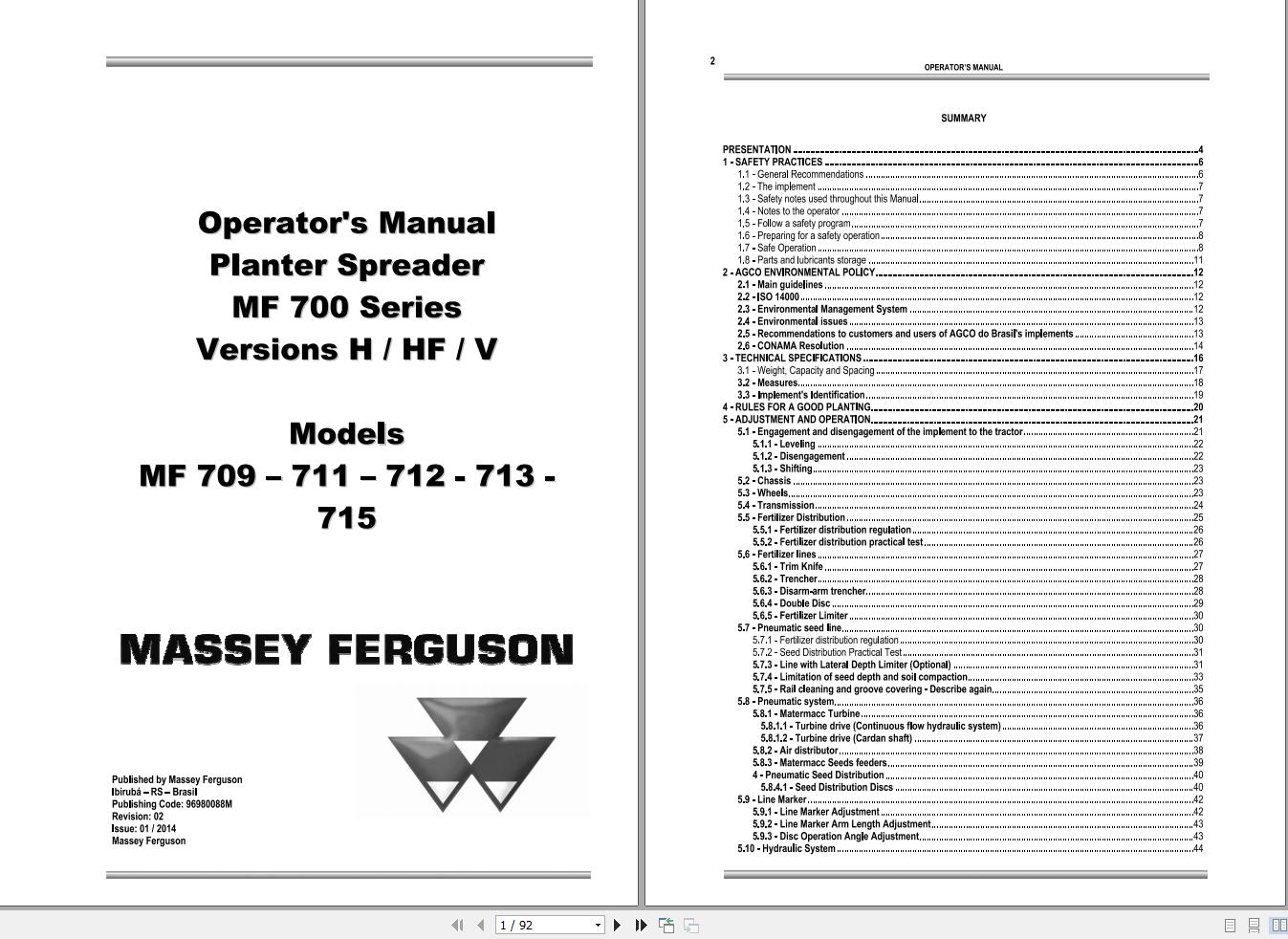 Massey Ferguson MF700 Series Version H HF V Operators Manual 96980088M