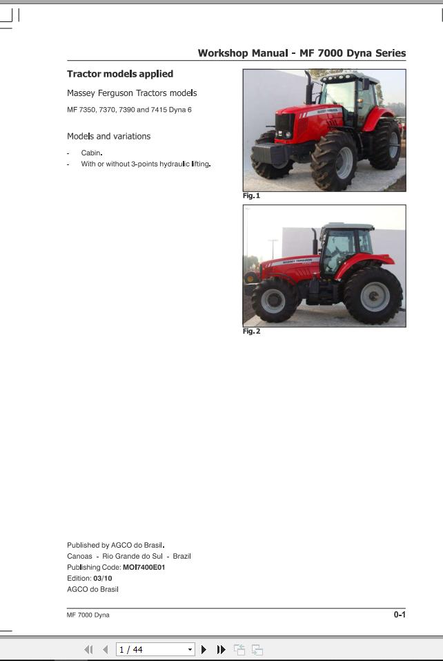 Massey Ferguson MF7000 Dyna Series Workshop Manual MOI7400E01