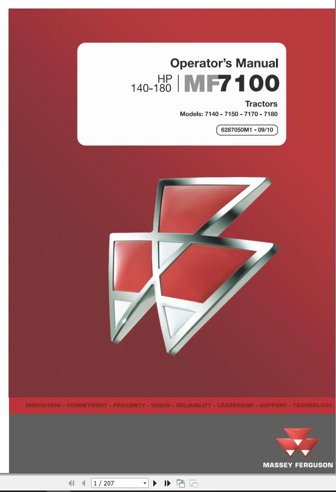 Massey Ferguson MF7100 Series Operators Manual 6287050M1