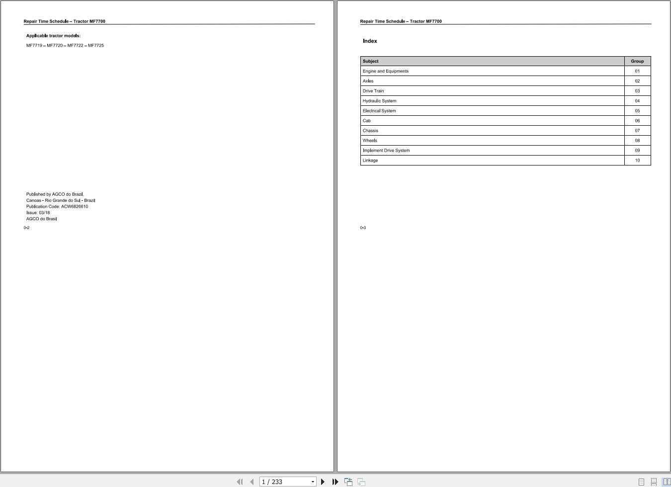 Massey Ferguson MF7700 Series Parts Manual ACW6826610