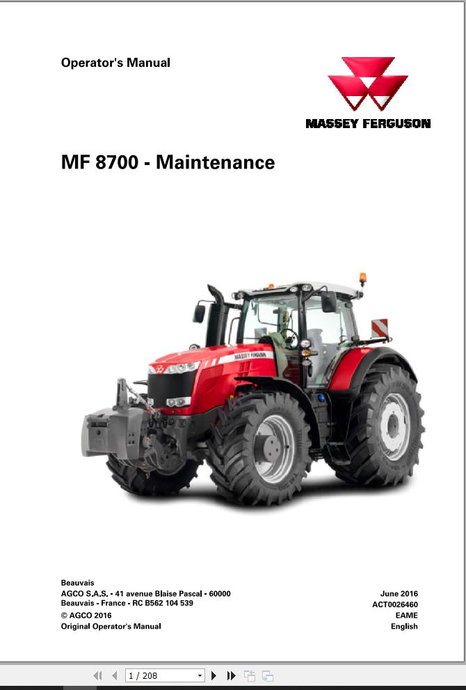 Massey Ferguson MF8700 Maintenance Manual ACT0026460