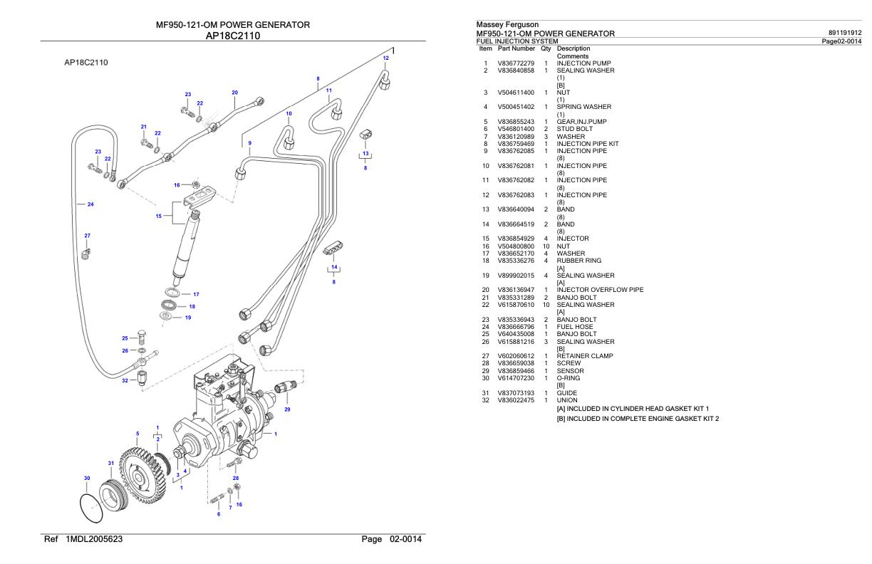 Massey Ferguson MF950-121-OM Parts Catalog 891191912