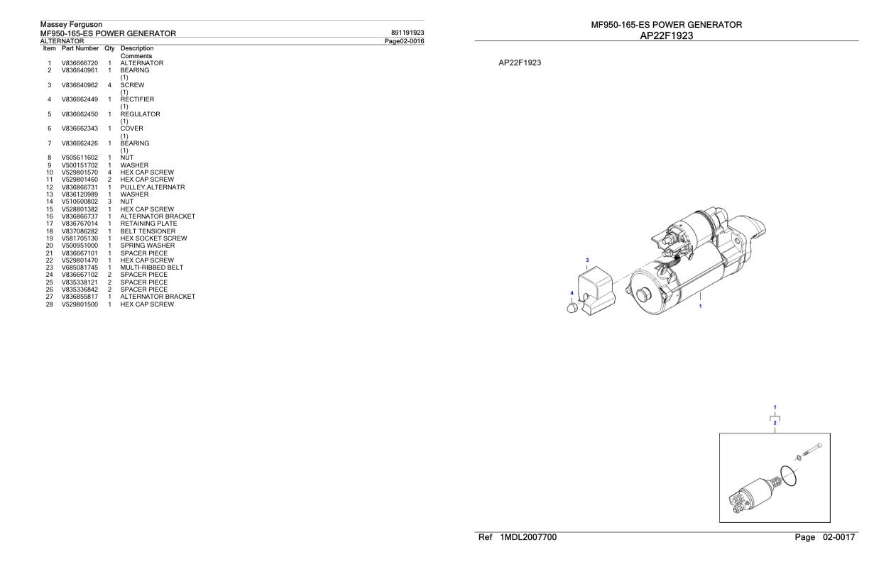 Massey Ferguson MF950-165-ES Parts Catalog 891191923