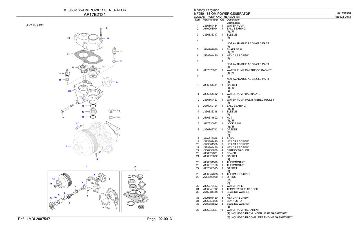 Massey Ferguson MF950-165-OM Parts Catalog 891191918