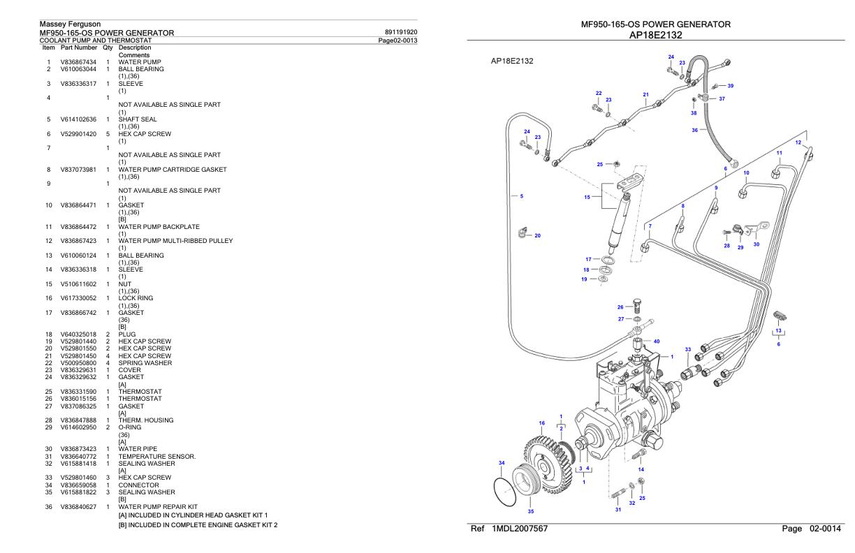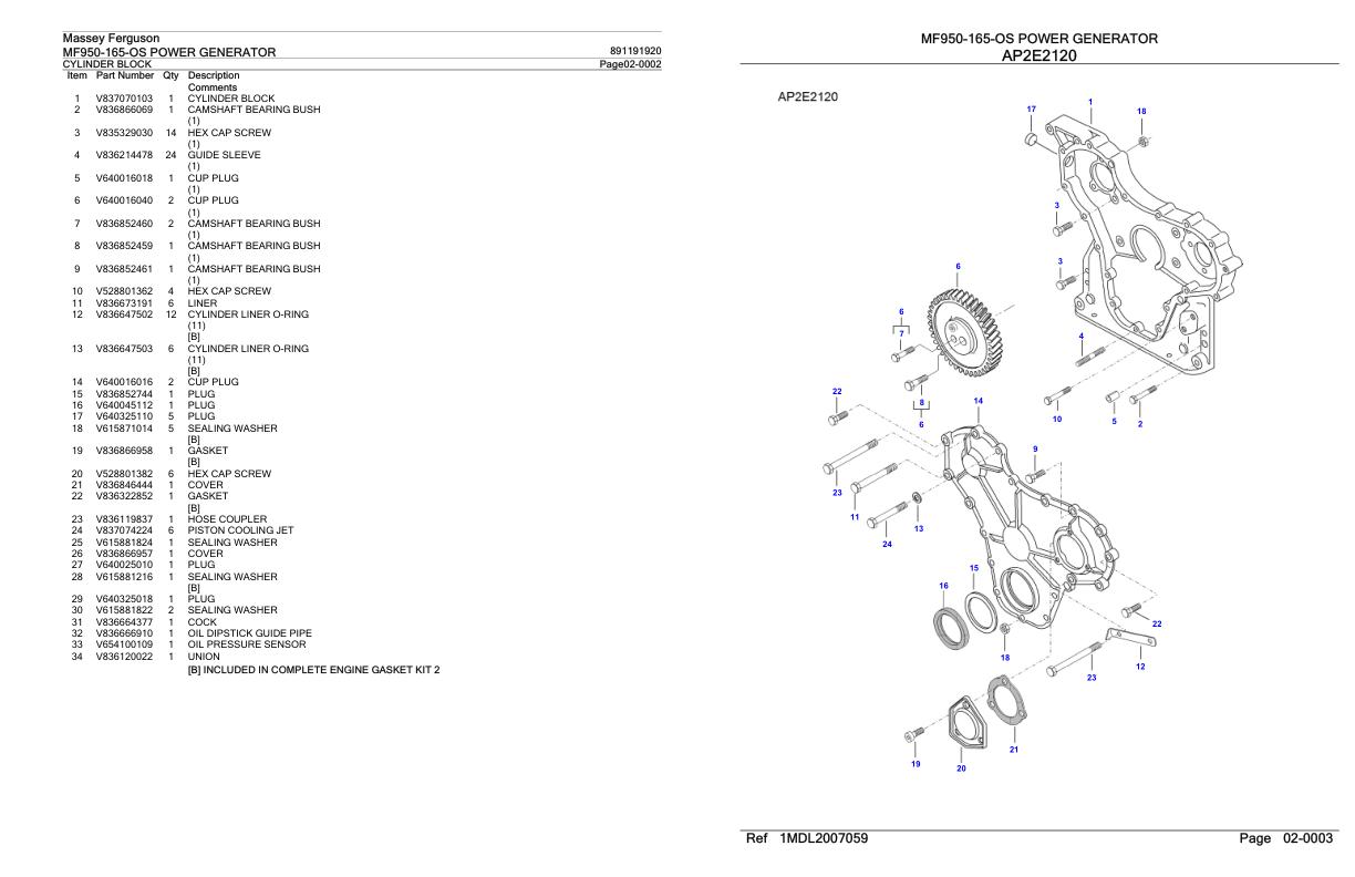 Massey Ferguson MF950-165-OS Parts Catalog 891191920