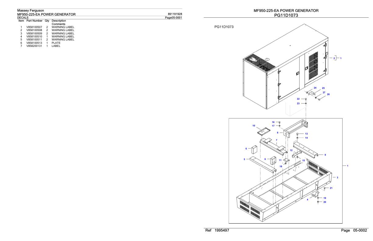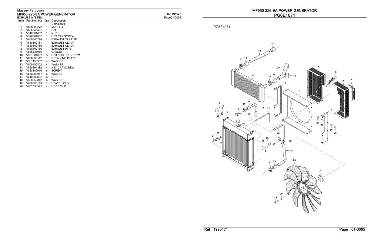 Massey Ferguson MF950-225-EA Parts Catalog 891191928