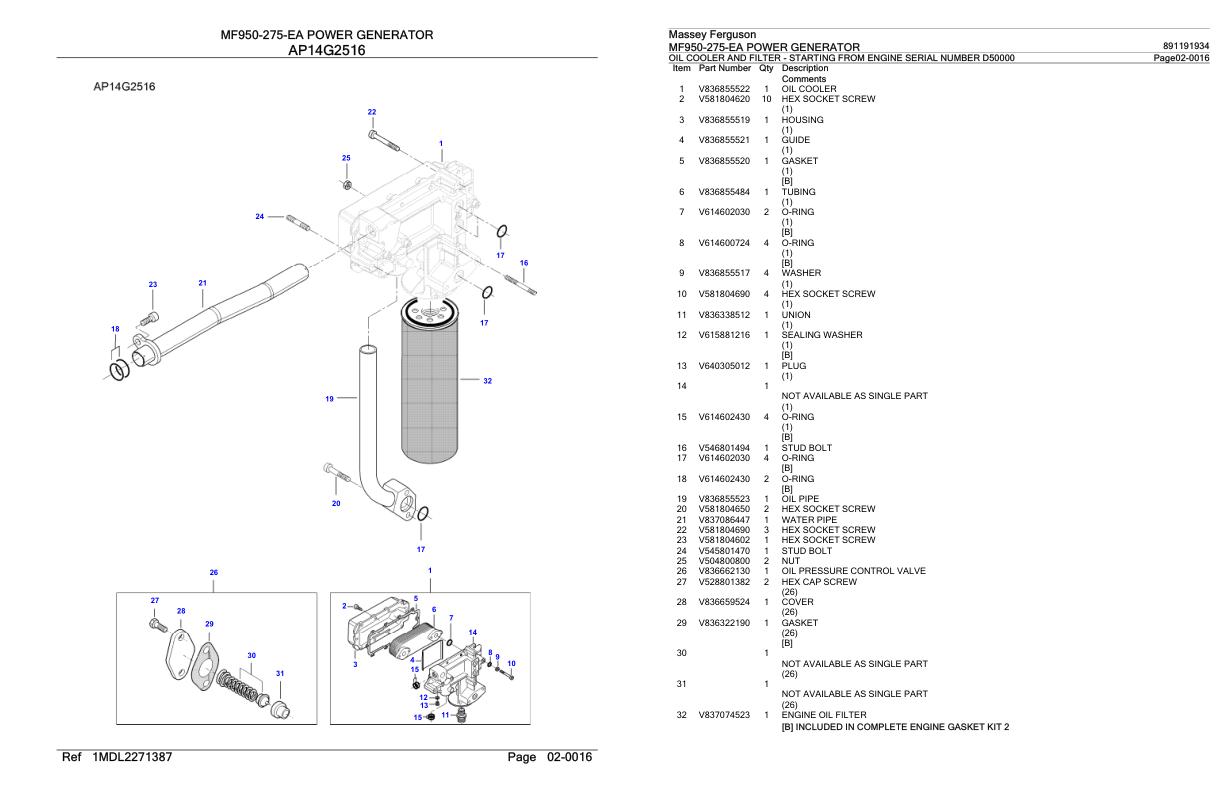 Massey Ferguson MF950-275-EA Parts Catalog 891191934