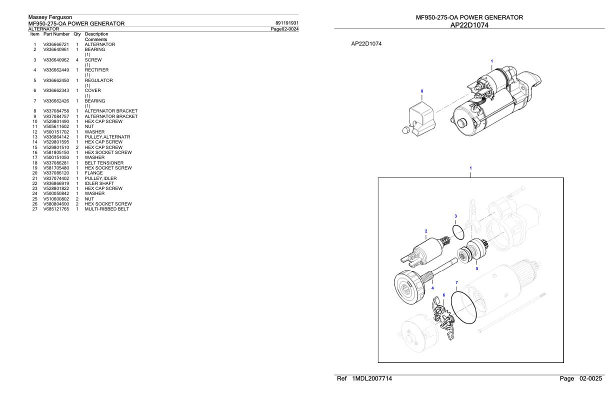 Massey Ferguson MF950-275-OA Parts Catalog 891191931
