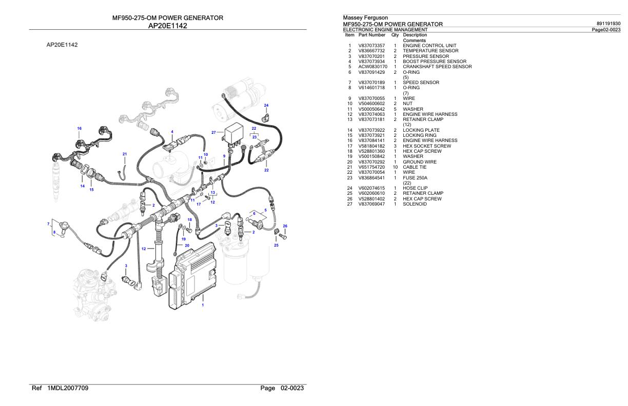 Massey Ferguson MF950-275-OM Parts Catalog 891191930