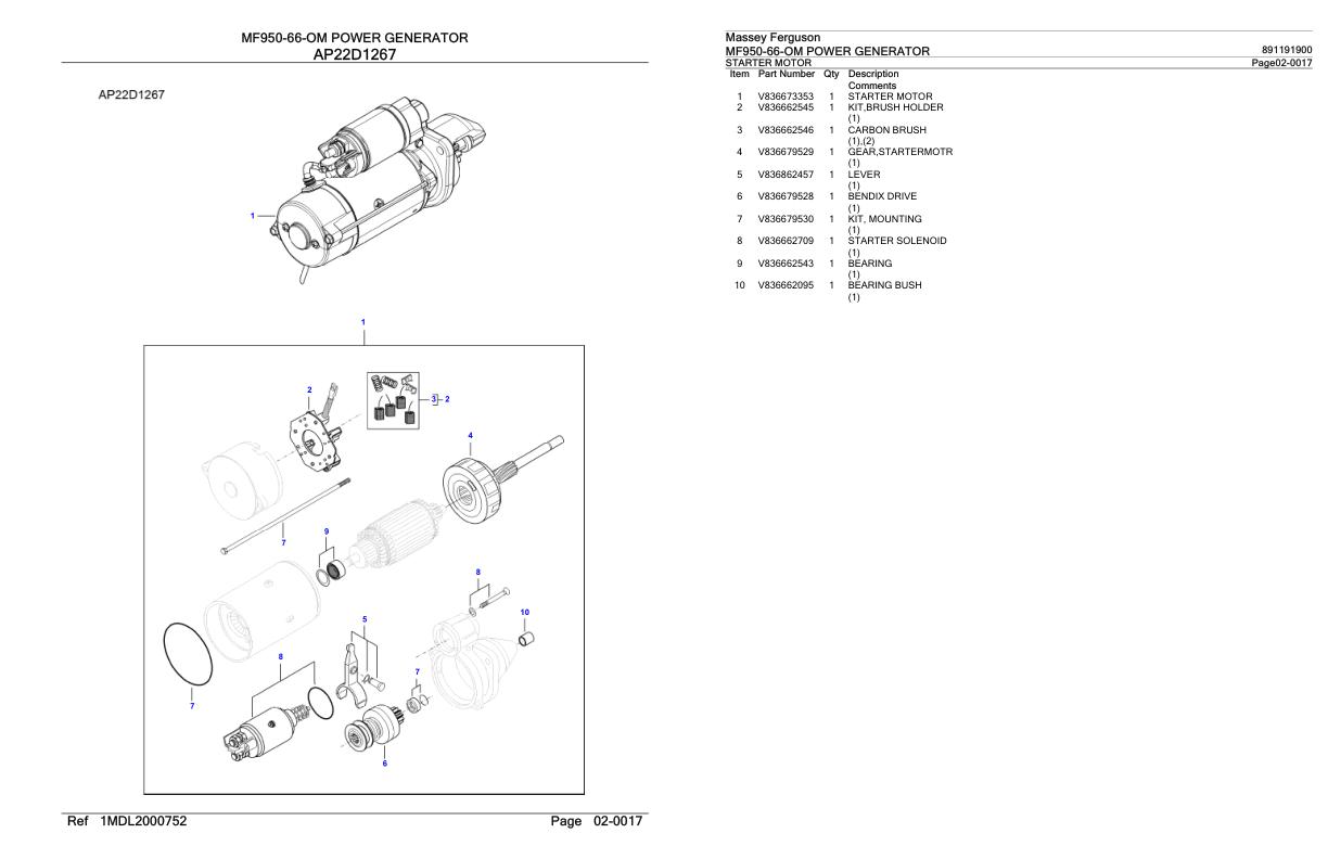 Massey Ferguson MF950-66-OM Parts Catalog 891191900