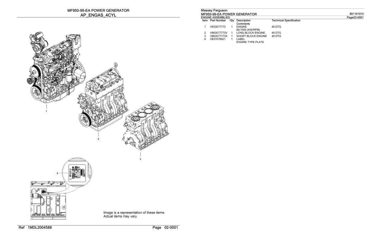 Massey Ferguson MF950-99-EA Parts Catalog 891191910