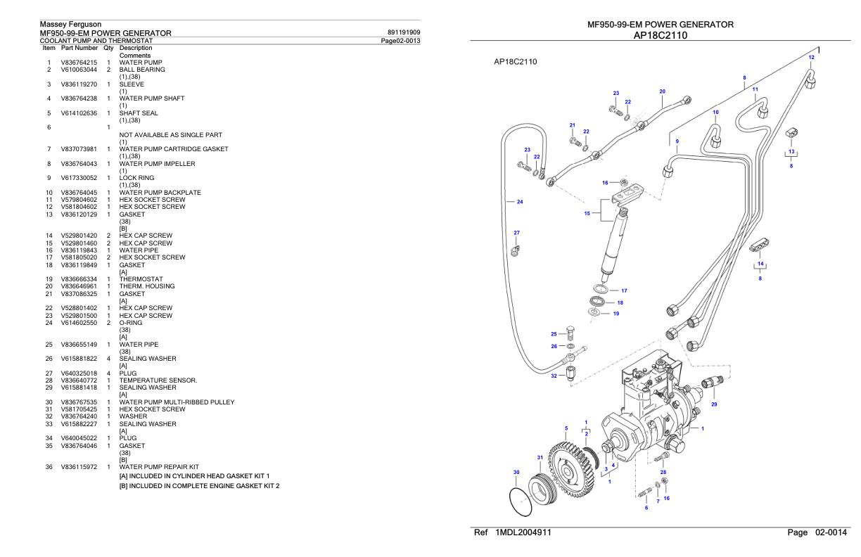 Massey Ferguson MF950-99-EM Parts Catalog 891191909