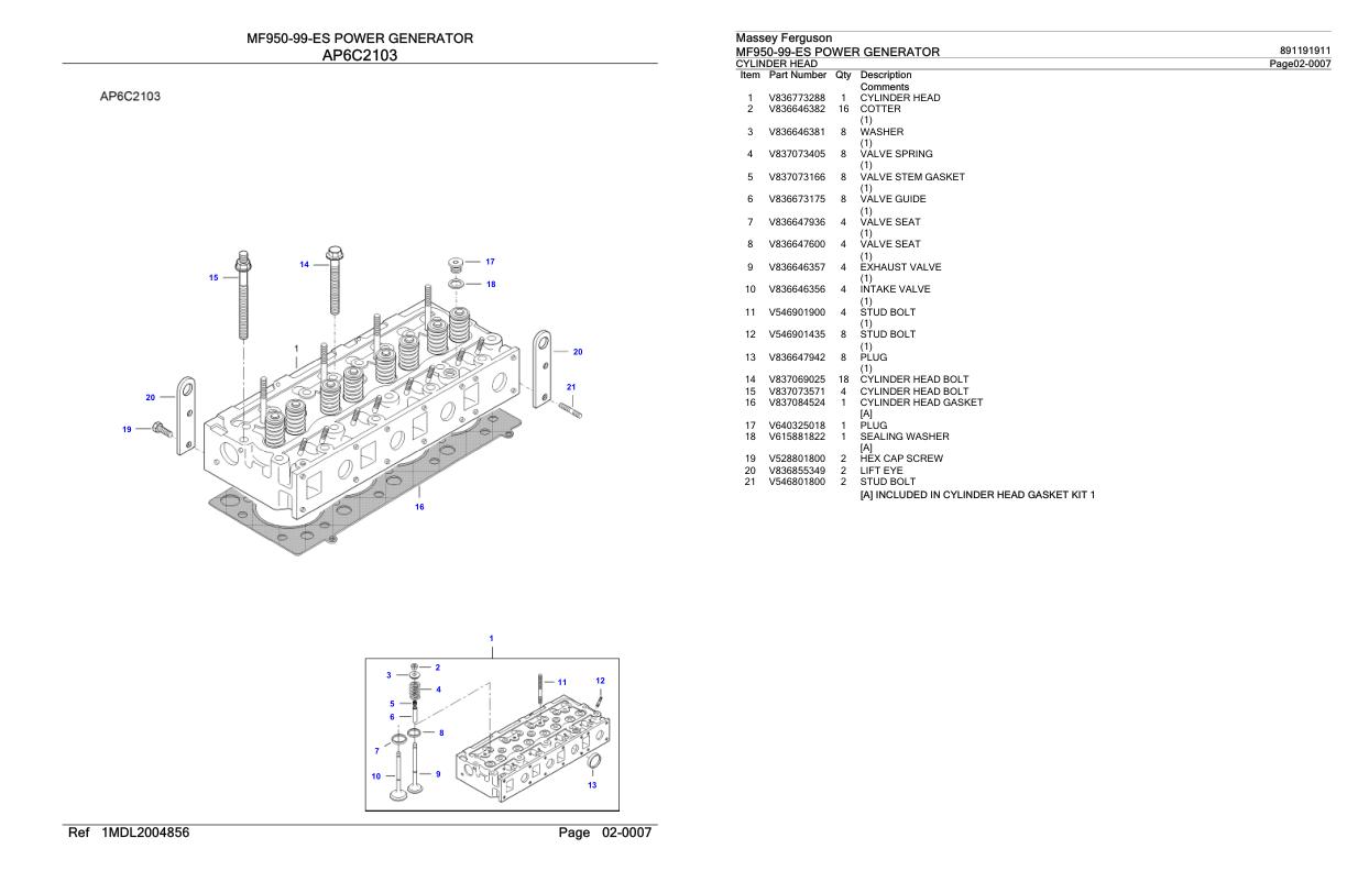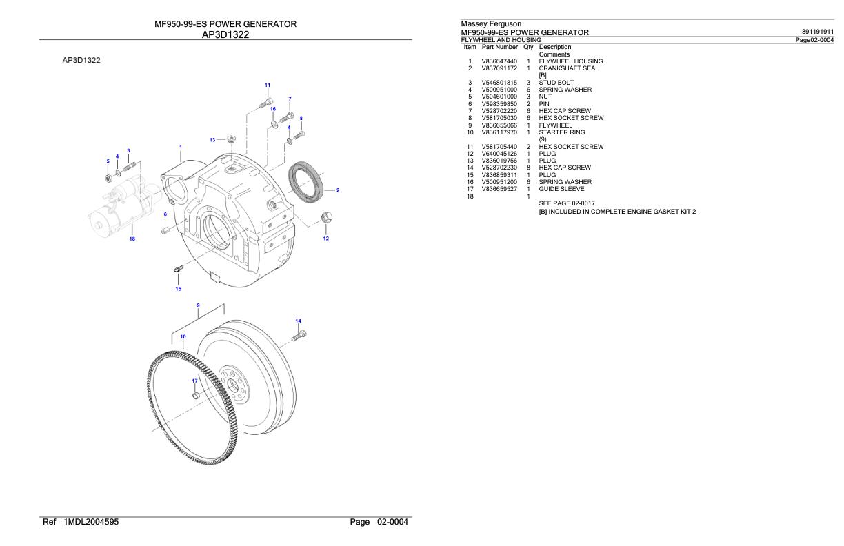 Massey Ferguson MF950-99-ES Parts Catalog 891191911
