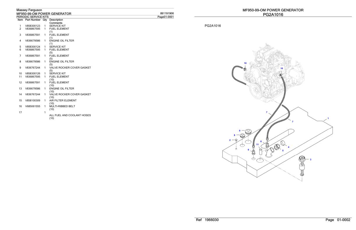 Massey Ferguson MF950-99-OM Parts Catalog 891191906