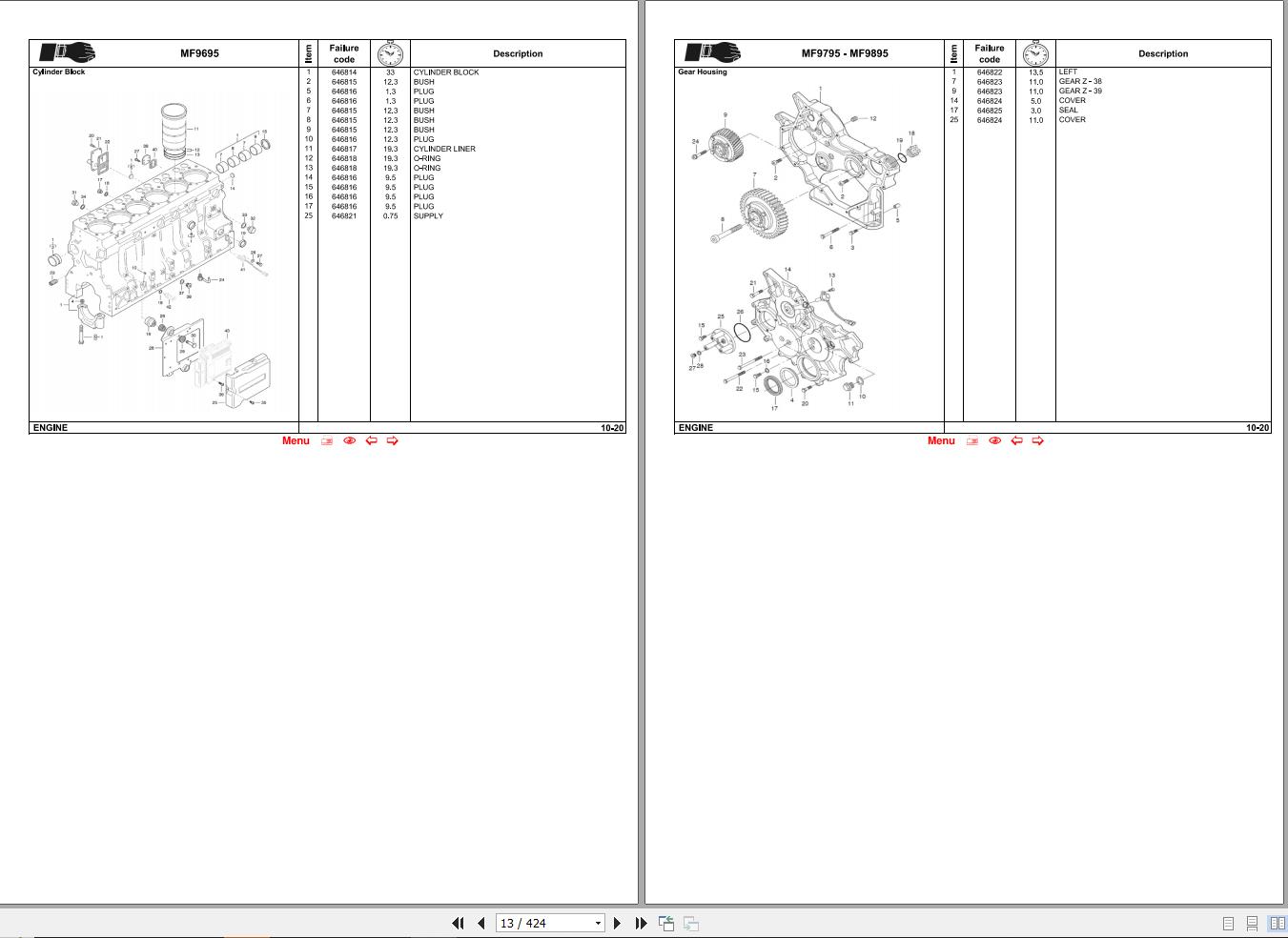 The Bookmarks of Massey Ferguson MF9695 MF9795 MF9895 Parts Manual: