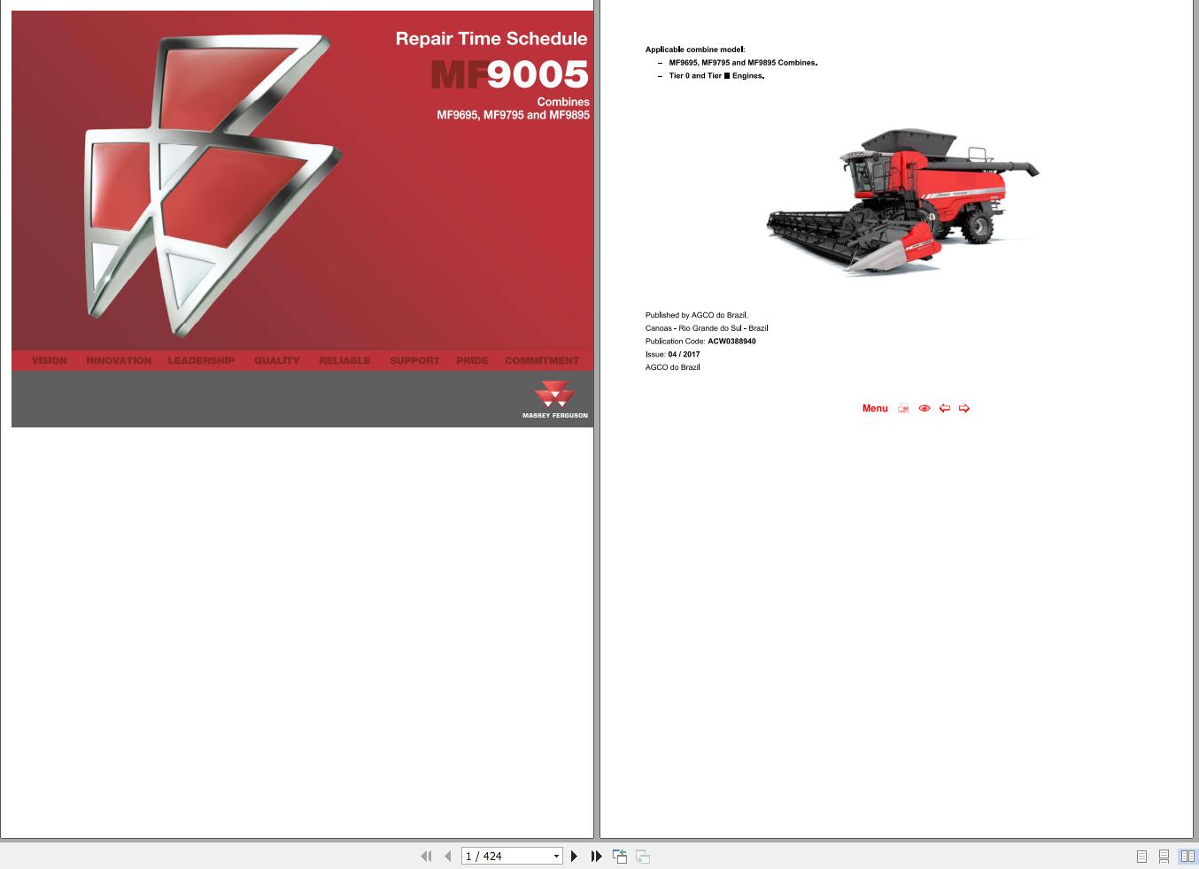 Massey Ferguson MF9695 MF9795 MF9895 Parts Manual ACW0388940