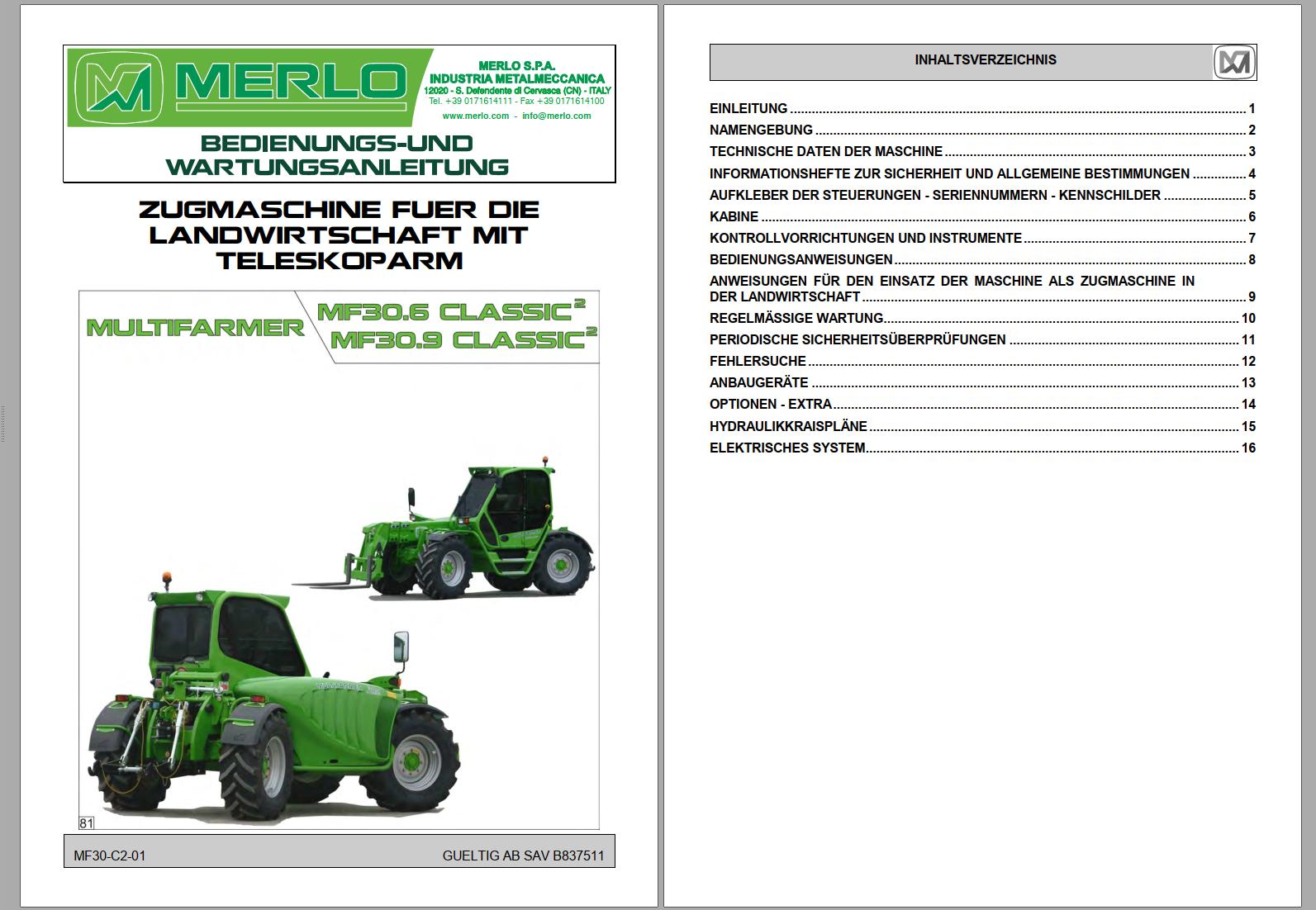 Merlo Multifarmer MF30.6 MF30.9 Classic Service Manual