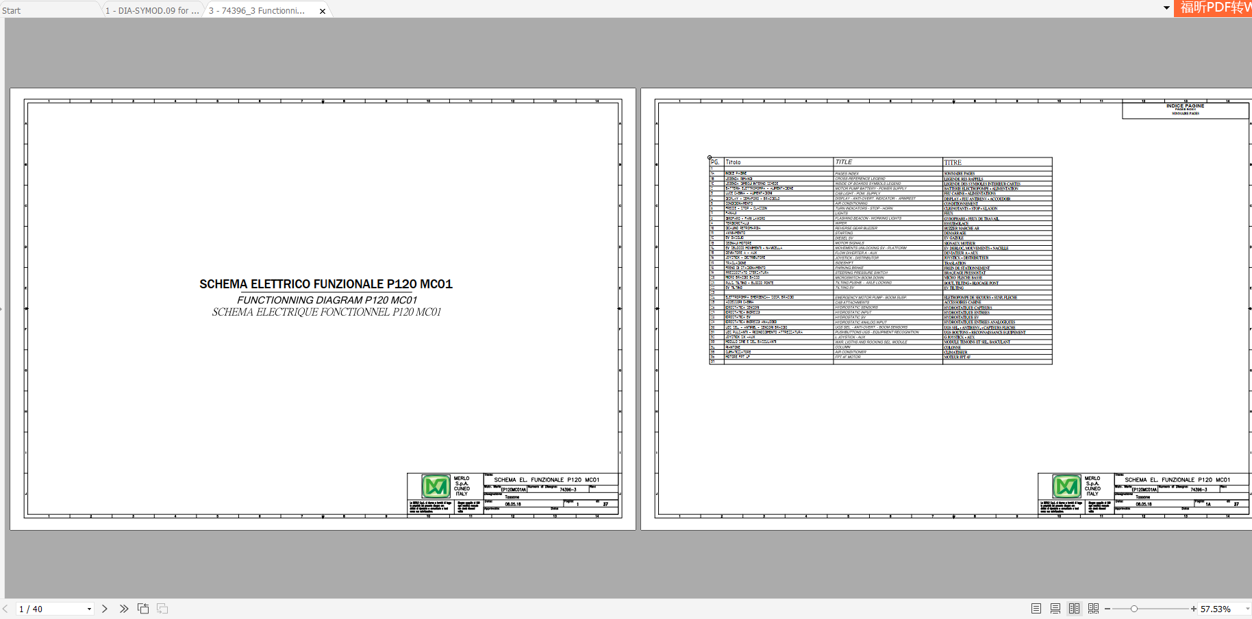 Merlo P120.10HM Service Manual, Hydraulic & Electrical Diagram