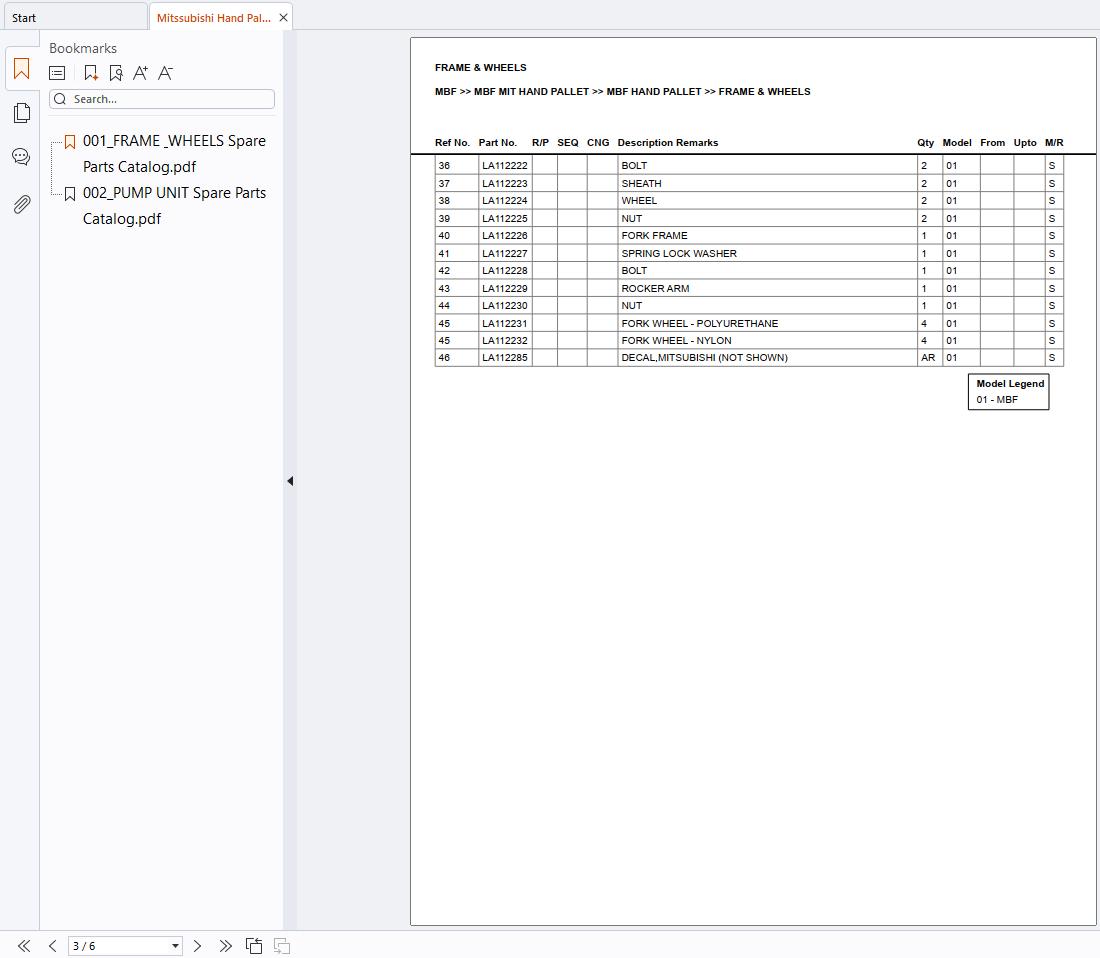 Mitssubishi Hand Pallet MBF Europe Parts Catalog