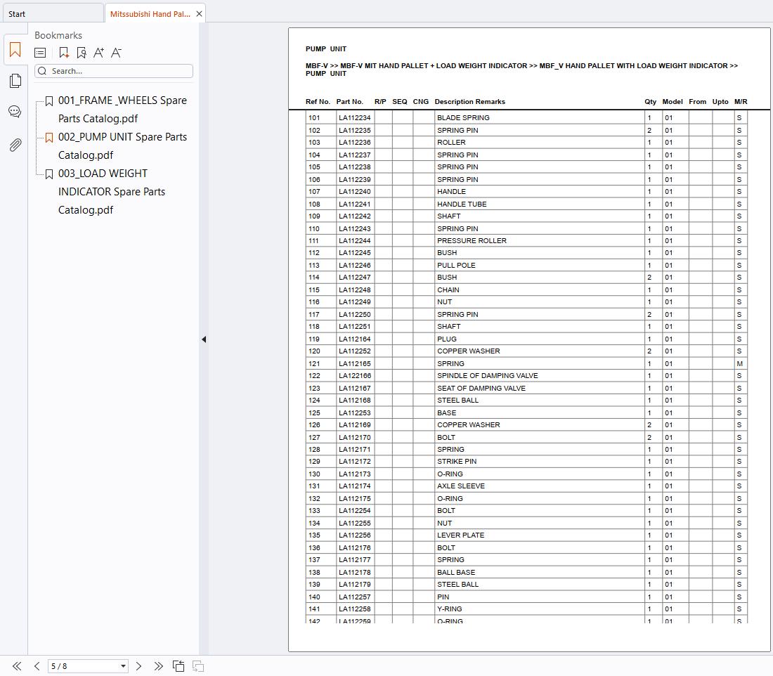 Mitssubishi Hand Pallet MBF-V Load Weight Indicator Europe Parts Catalog