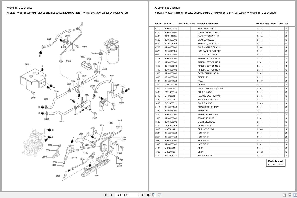 Mitsubishi D04EG-E431MNW 2015 98721-50010 Parts Catalog
