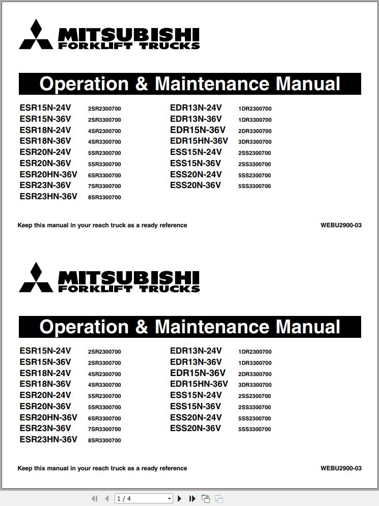 WEBU2900-03-09 Operation & Maintenance Manual: To the Mitsubishi Reach Truck Owner
