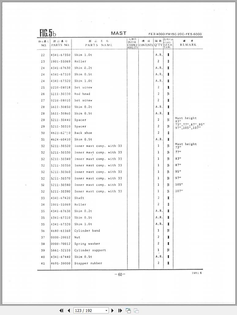 Mitsubishi FB14P FB15C FB15P FB18P FB20C FB20P FB25P FB30P Spare Parts Catalog