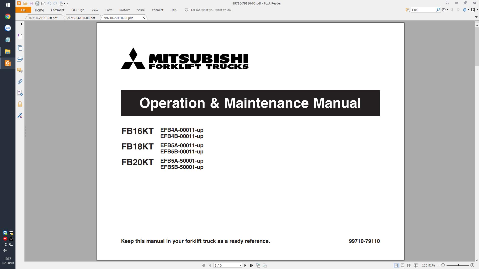 Mitsubishi FB16KT FB18KT FB20KT Operation & Maintenance Service Manual