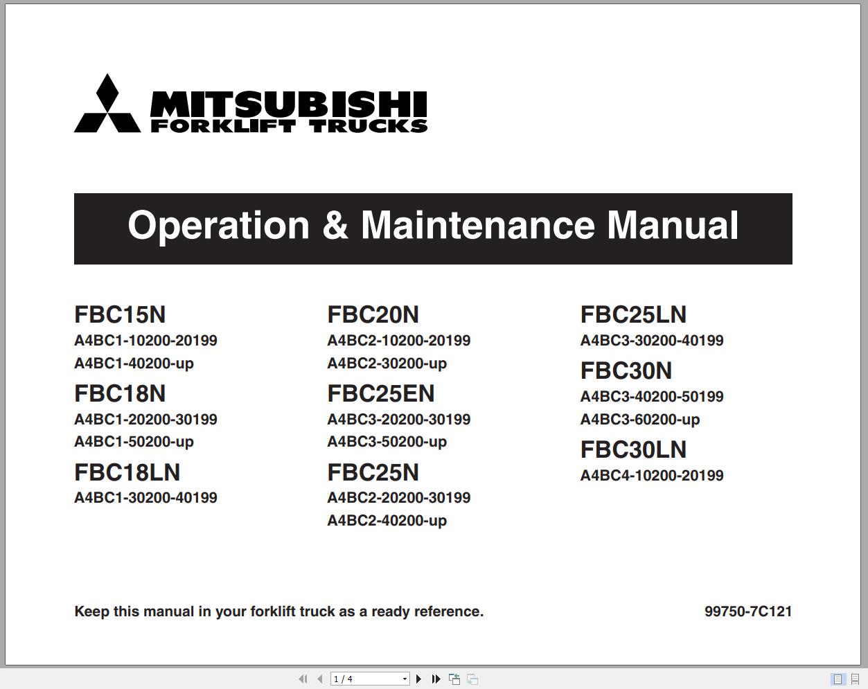 99750-7C121-11 To the Mitsubishi Forklift Truck Owner