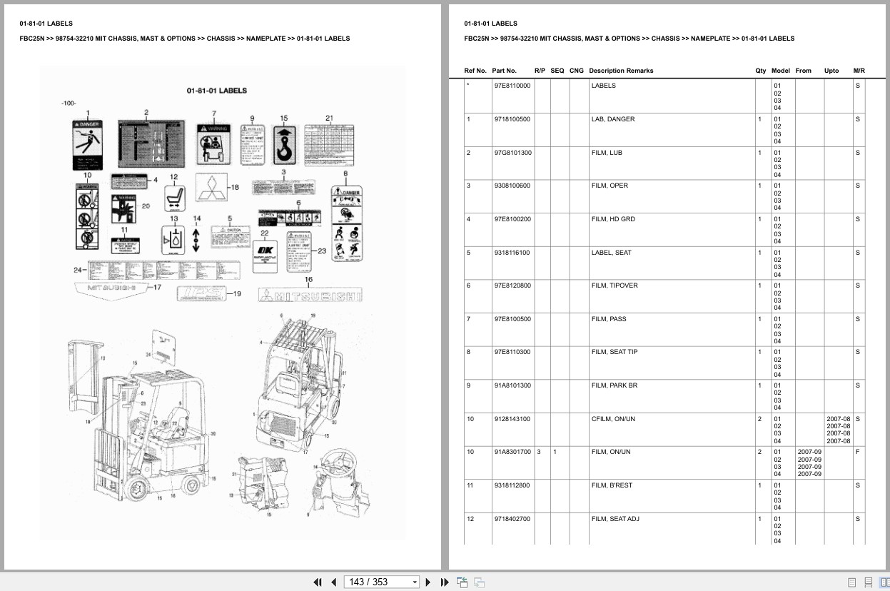 Mitsubishi FBC25N Chassis Mast Options Europe Parts Catalog 98754-32210