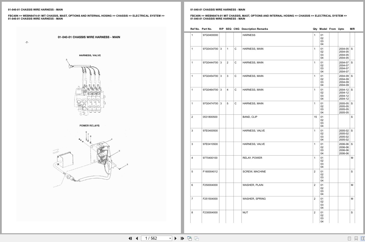 Mitsubishi FBC40N Chassis Mast Options Internal Hosing Europe Parts Catalog WEBN8474-01