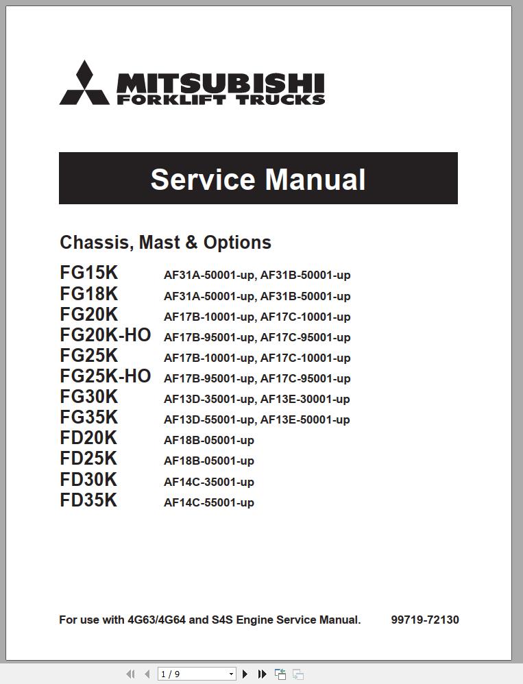 Mitsubishi Pub List Publication List (Service, Operator, & Parts Manuals)