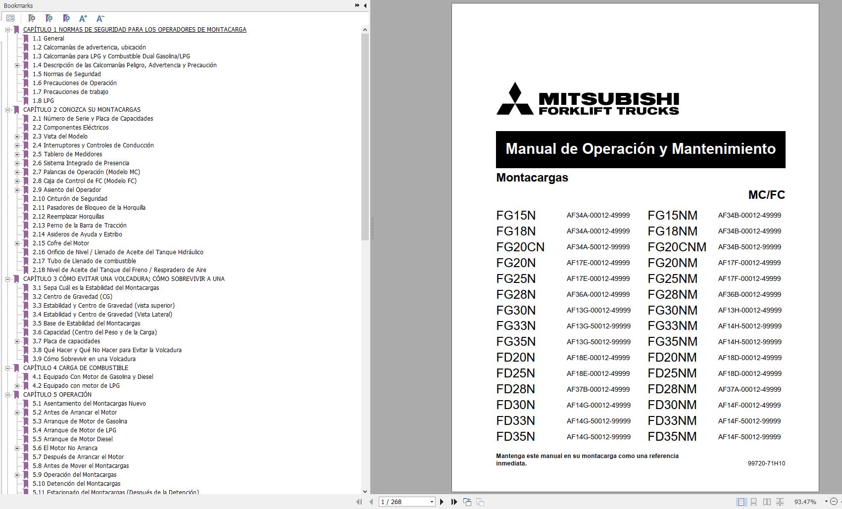 Mitsubishi FD20NM FD25NM FD28NM FD30NM FD33NM FD35NM Operation & Maintenance Service Manual