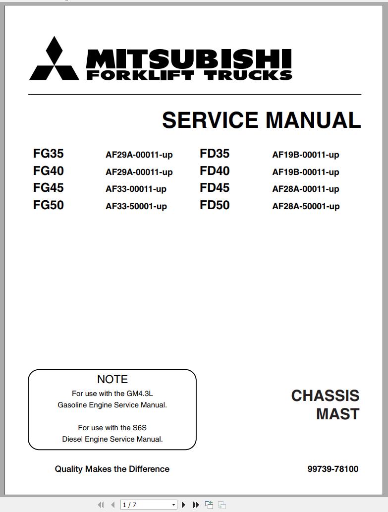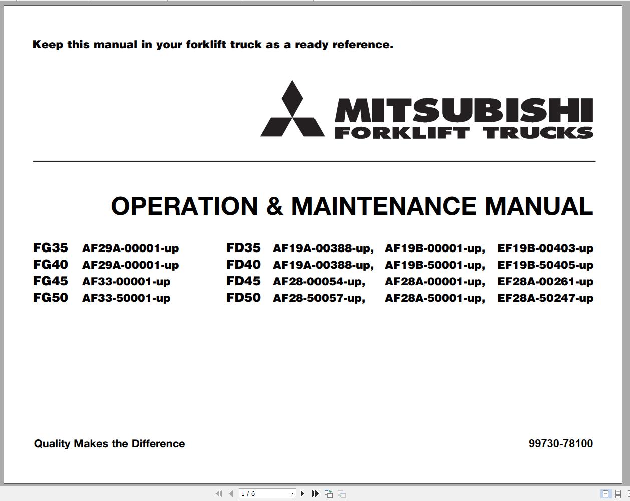 Mitsubishi FD40 Operation & Maintenance Service Manual