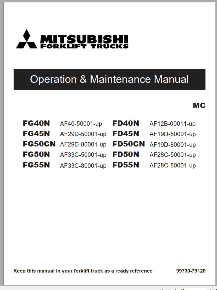99730-79120-13 Operation & Maintenance Manual: To the Mitsubishi Forklift Truck Owner