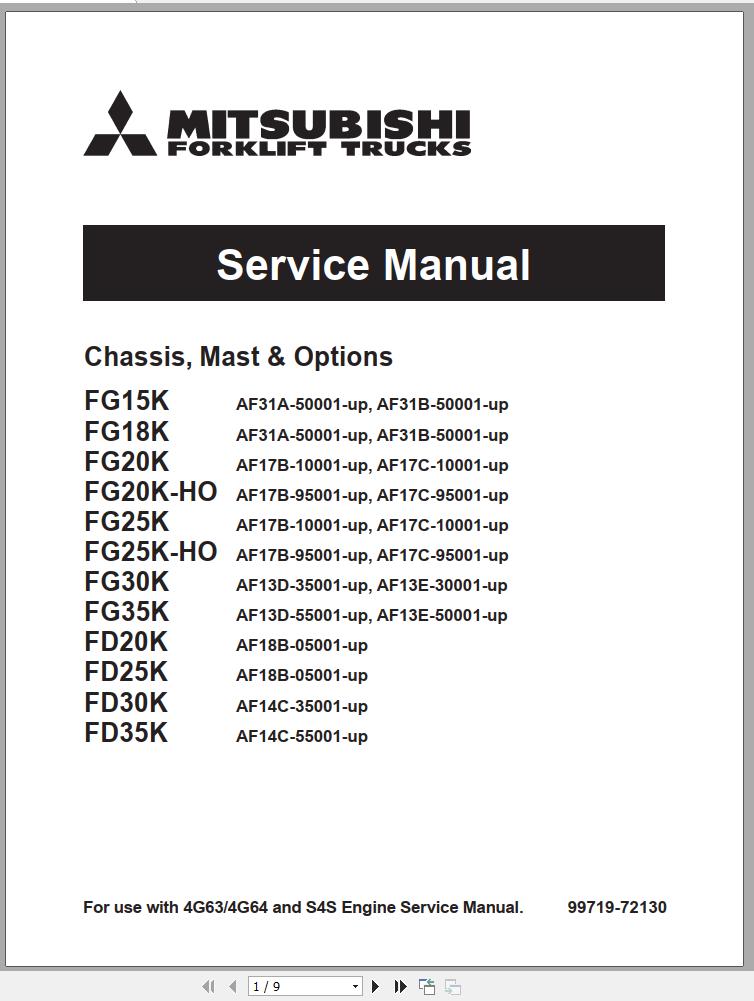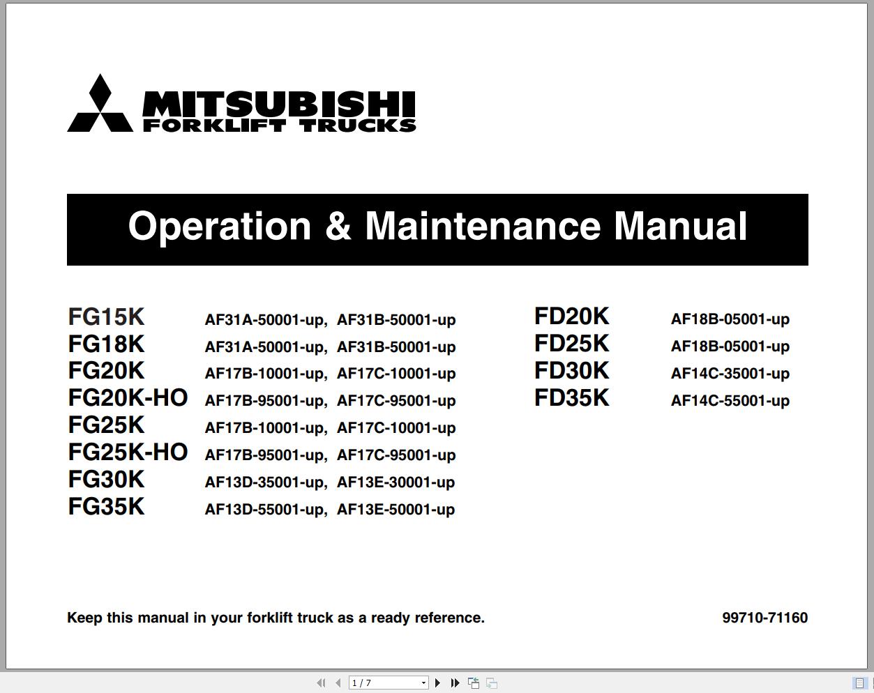 Mitsubishi FG18K FG20K FG20K HO FG30K FG35K Schematic Operation & Maintenance Service Manual