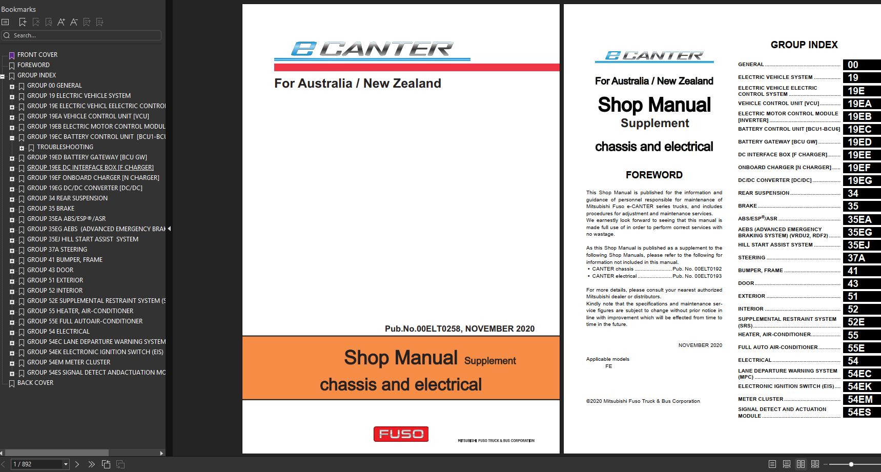 Mitsubishi FUSO eCanter Austraila New Zealand Chassis Electrical Shop Manual Supplement