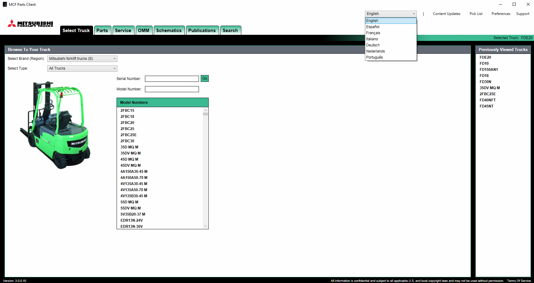 Program: Mitsubishi Forklift Trucks Electronic Parts Catalogue