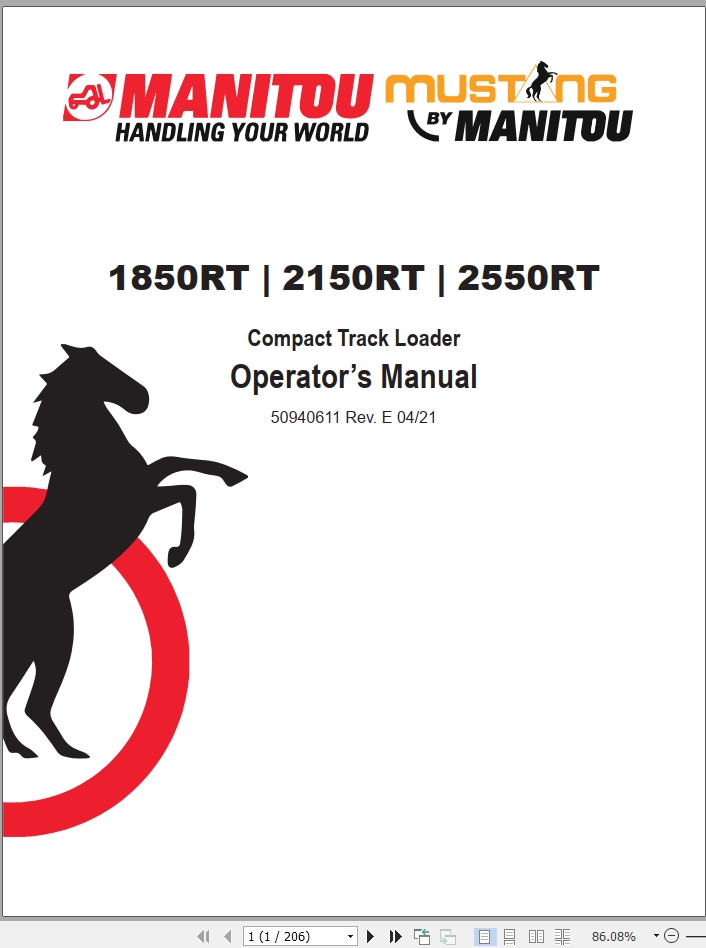Mustang 1850RT 2150RT 2550RT Operator's Manual 50940611D