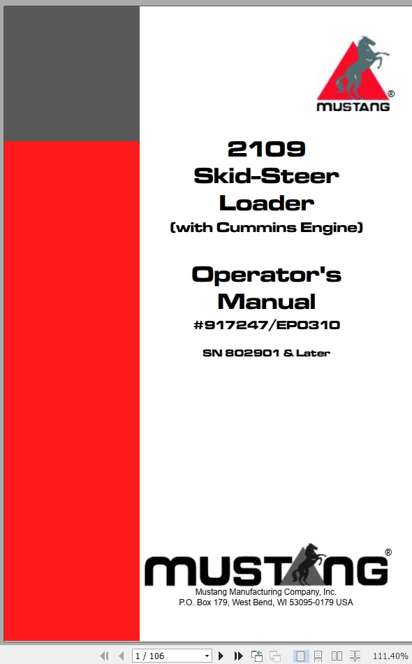 Mustang 2109 Operators Manual 917247E