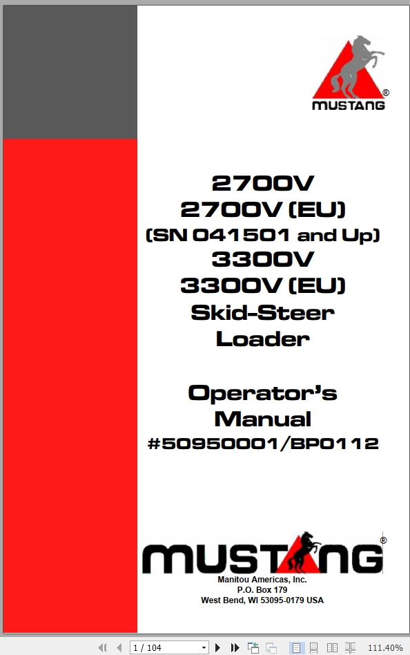Mustang 2700V 3300V Operators Manual 50950001B