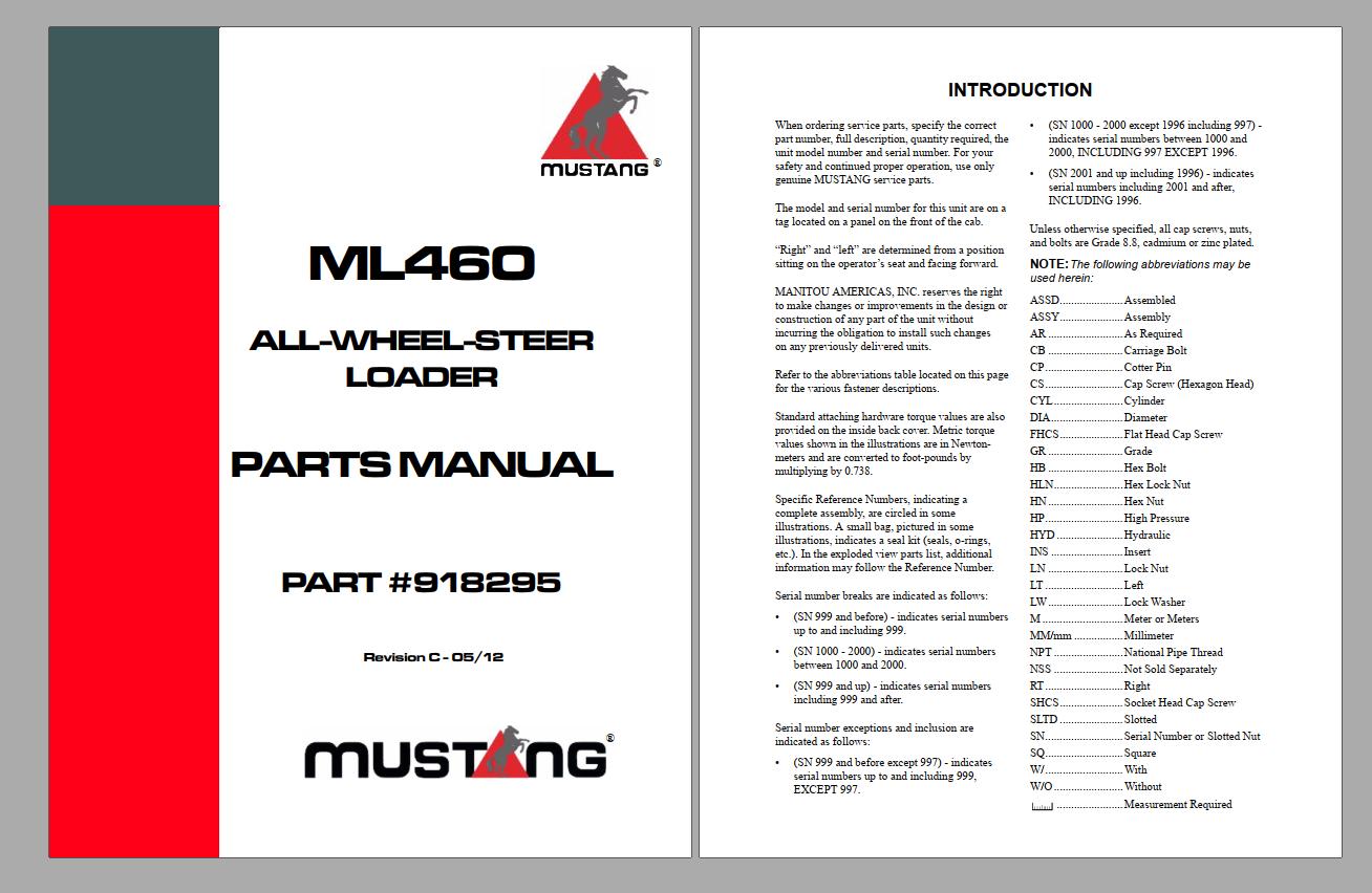 Mustang Skid Steer Loader Part Catalog (Part Manuals)