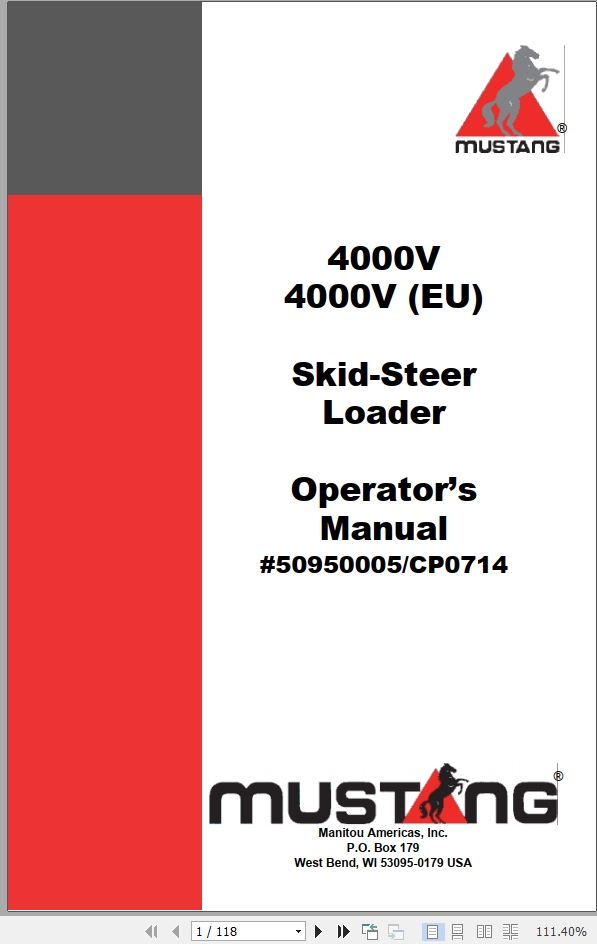 Mustang 4000V Operators Manual 50950005C
