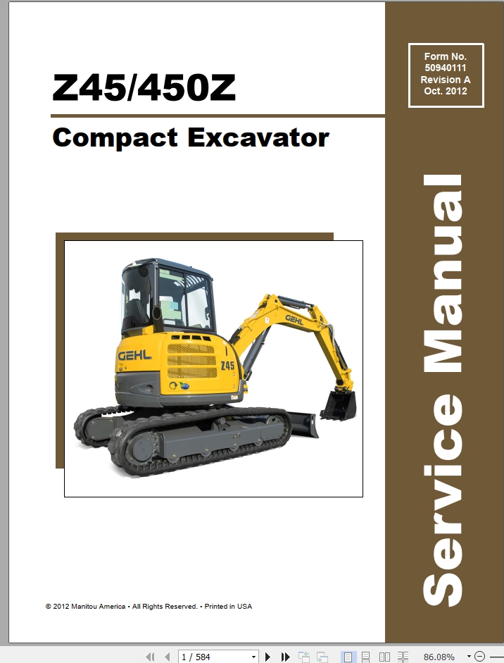 Mustang 450Z GEHL Z45 Service Manual 50940111A